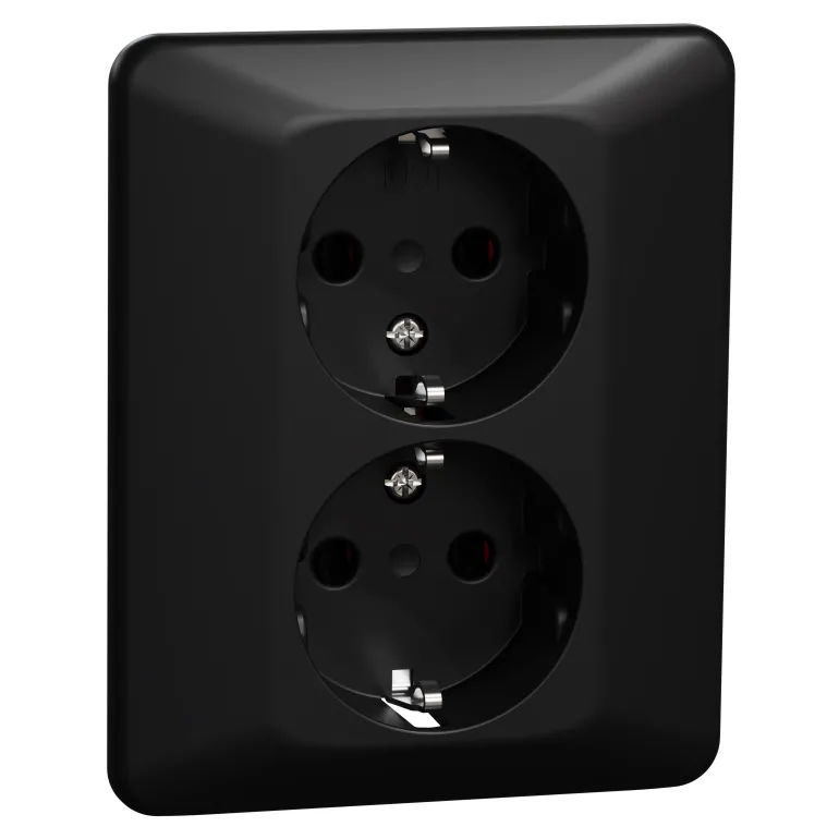 Pistorasia matalalla profiililla, jonka syvyys seinästä vain 10,5 mm. Pohja ja kehys halogeenittomasta kestomuovista. Kaksinkertaiset liitännät vaihetta kohti. Vaatii 1,5-kojerasian.