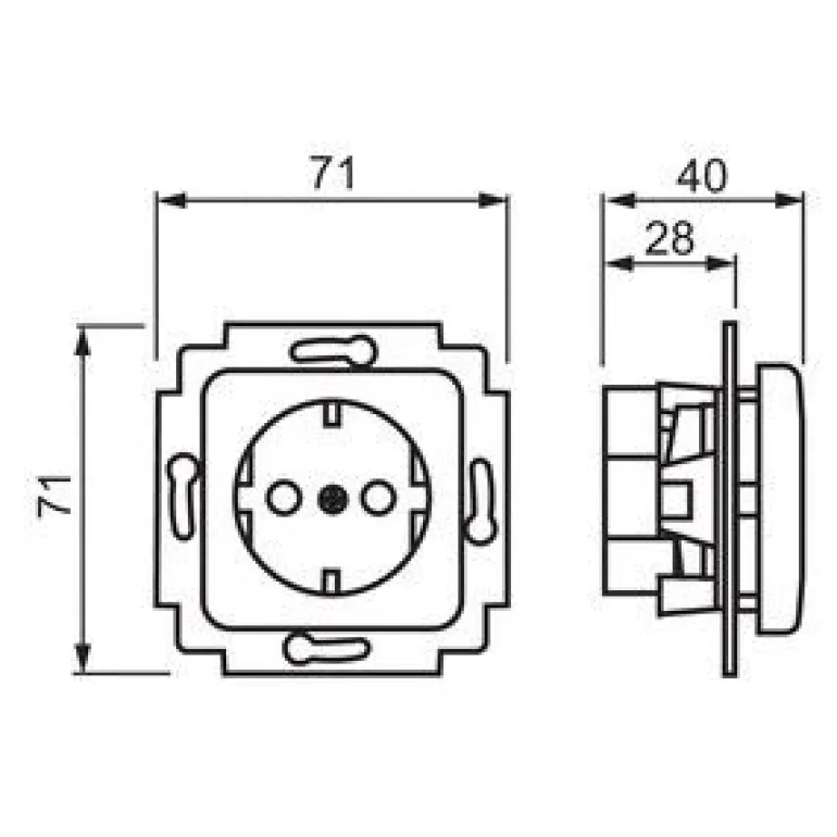 Jussi -tuotesarjan pistorasia uppoasennukseen. Parannettu kosketussuojaus ja kytkentätapa pistokepuristin/jousiliitin. Maadoitettu, jousiliittimin. Pistorasiassa on liittimet kutakin kosketinta kohden. Liittimiin voi kytkeä max. 2 johtoa. Liittimet on hyväksytty ML- ja MK -johtimille. Ei lisäliittimiä.