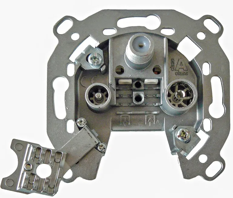 Antennirasia TV/Radio + SAT + SAT:lle. Täydennetään kehyksellä ja keskiölevyllä.