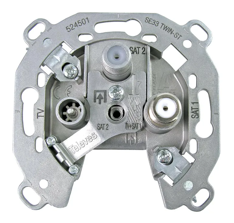 Antennirasia TV/Radio + SAT + SAT:lle. Täydennetään kehyksellä ja keskiölevyllä.