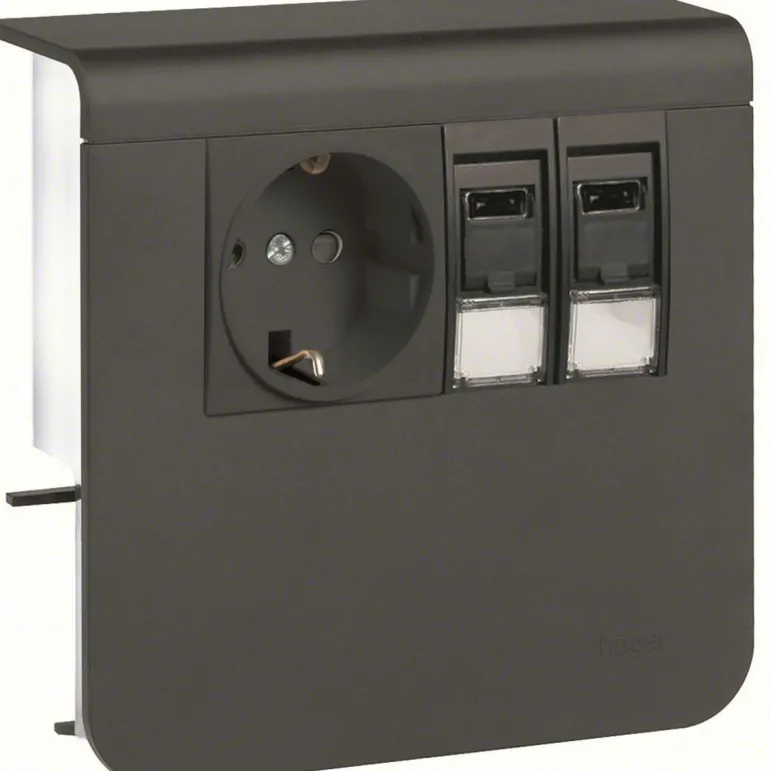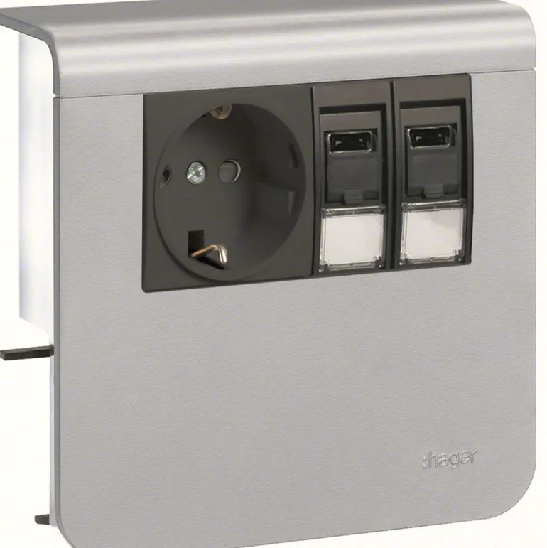 1-osainen pistorasia ja datapistorasia 2xRJ45 Cat 6 SL20055:lle kanavan korkeudelle 55 mm ja kanavan leveydelle 20 mm