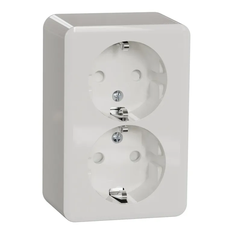 Schneider Electric Exxact pinta-asennettava 2-pistorasia. Uuden malliston pistorasioissa pohjalevyn lisäkiinnitysreiät tekevät seinäkiinnityksestä luotettavamman. Uusi Exxact pinta-mallisto nyt RAL9003-värissä. Modernit ja tyylikkäästi muotoillut Exxact pinta-asennuskalusteet.