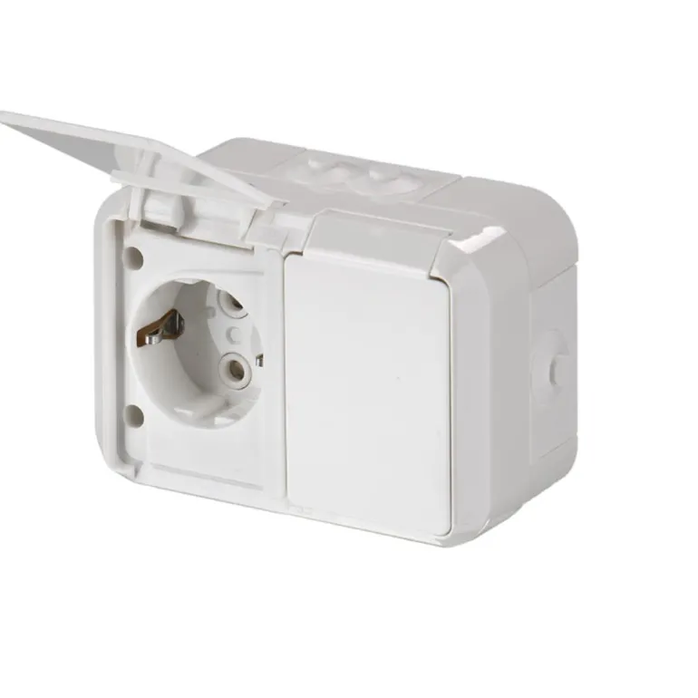 Pistorasia pinta-asennukseen (umpikoteloitu, pöly/roiskevesitiivis). Sopii kotelointiluokalle: IP55.