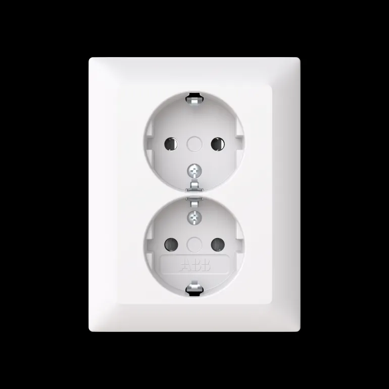 2-osainen pistorasia peitelevyllä. Pistorasiassa on liittimet kutakin kosketinta kohden ja niihin voi kytkeä max. 4 johtoa (haaroitusmahdollisuus). Pistorasian runko on kosketussuojainen ilman peitelevyä. SAGA™ tuotteen kokopeitelevyn valmistukseen on käytetty biopohjaista muovia ja se on valmistettu ABB:n nettonolla-tehtaalla Suomessa.