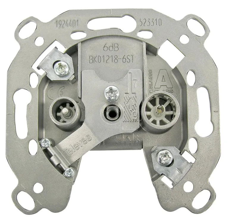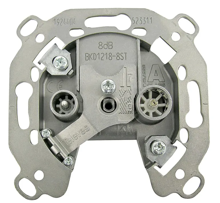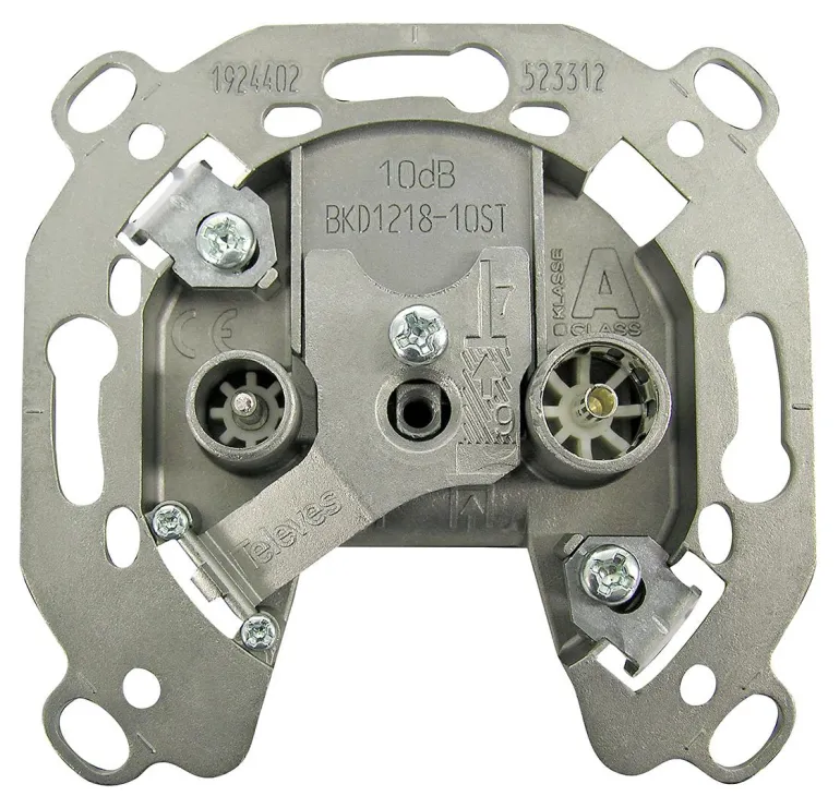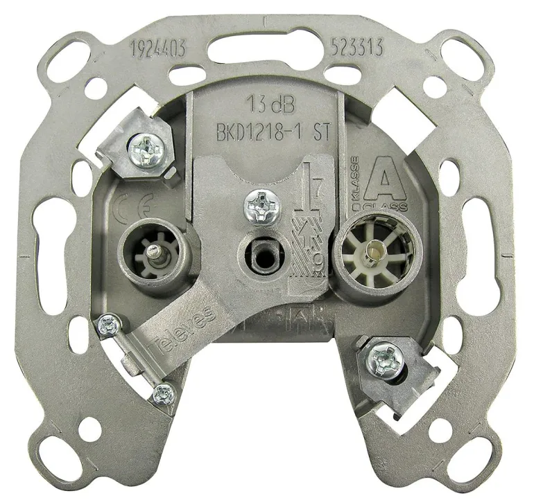 Sarjapistoke kahdella IEC-liittimellä. Vasen liitin on IEC-uros TV:lle ja oikea liitin IEC-naaras radiolle (FM). Mahdollistaa läpiviennin, joka mahdollistaa useiden pistorasioiden liittämisen ketjutettuun verkkoon. Suositellun pääterasian tuotenumero on 533211. Yhteensopiva DOCSIS 3.1:n kanssa.