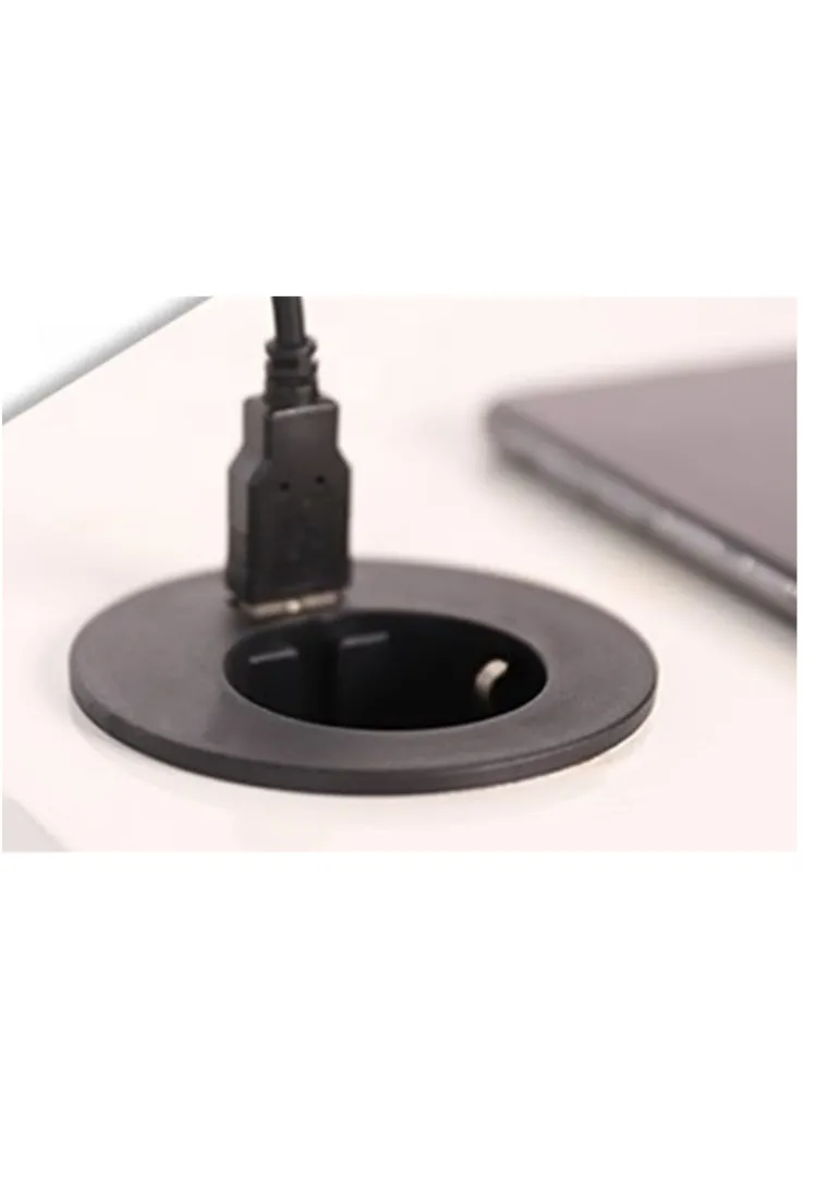Rutab LOOP2 on 1-osainen pistorasia USB A -portilla. Uppoasennettava ø60 mm reikään pöytään tai tasolevyyn jonka enimmäispaksuus noin 50 mm.