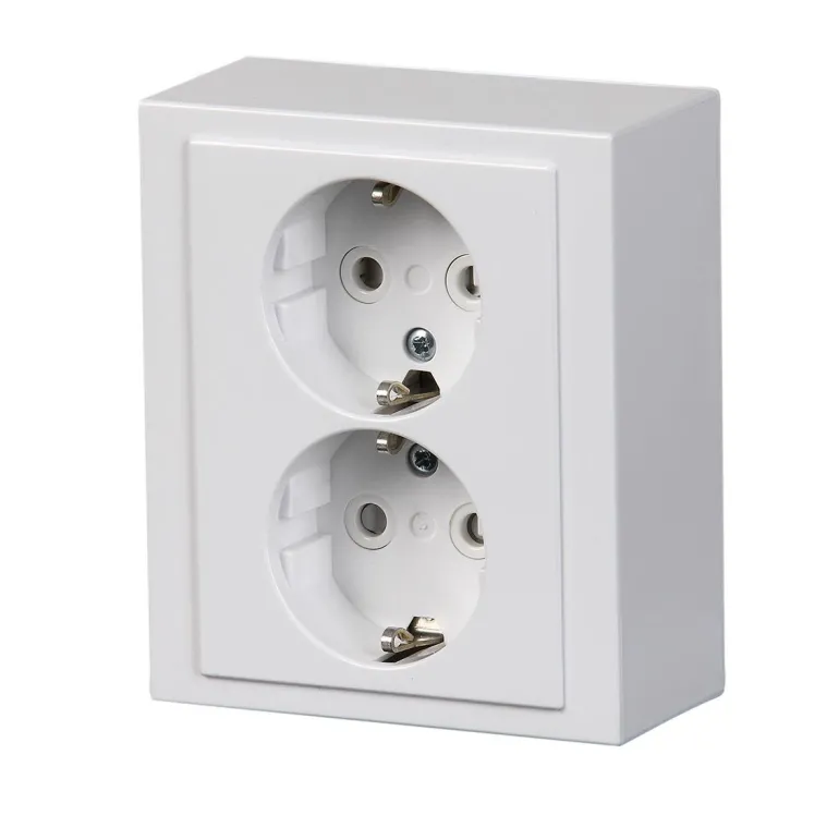 Impressivo -sarjan 2-osainen maadoitettu pistorasia pinta-asennukseen. Pistorasiassa on liittimet kutakin kosketinta kohden ja niihin voi kytkeä max. 4 johtoa (haaroitusmahdollisuus). Liittimet on hyväksytty ML- ja MK -johtimille. Ei potentiaalivapaita liittimiä. Lapsisuojat on integroitu pistorasian runkoon. IP21 -tiiveys saavutetaan vain jos kaapeli tuodaan alhaalta. Jousiliittimet, alumiini.