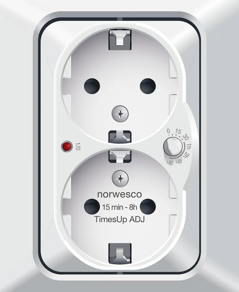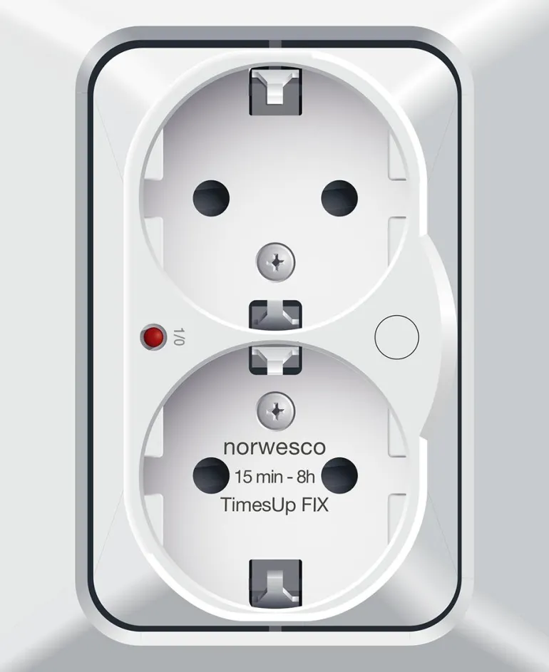 TimesUp on 2-osainen kosketussuojattu pistorasia, jossa on sisäänrakennettu ajastin ja joka on tarkoitettu uppoasennukseen. Jos pistorasia asennetaan sen sijaan pintaan, tätä varten on asennuskehys, joka on ostettavissa erikseen. Pienen kokonsa ansiosta TimesUp sopii mihin tahansa paikkaan, jossa tavallinen 2-osainen pistorasia yleensä sijaitsee. Ajastimen toiminta-aikaa on helppo säätää ajastimen etuosassa olevasta vääntönupista. Ajastimen toiminta-aika voidaan säätää vaiheittain ajalle 0, 15 tai 30 min tai 1, 2, 4 tai 8 h.