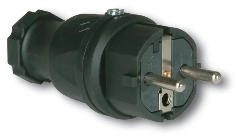 Pistotulppa maadoituslaitteella Garo Pro Solid kiinteällä kumikotelolla. Musta väri ja nimellisvirta 16A.