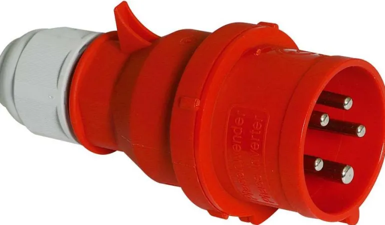 Polyamidista valmistettu pistotulppa, jossa on messinkiliittimet. Nimellisvirta 16 A ja kaapelin läpivienti 8–18 mm.