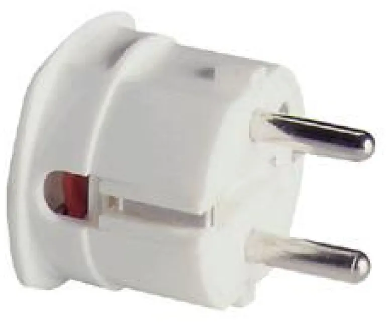 ABL 1107100 on 2-napainen maadoitettu pistoke nimellisvirralla16A ja nimellisjännitteelle 250 V. Kaapelin sisäänmeno kulmassa, suojausluokka IP21.