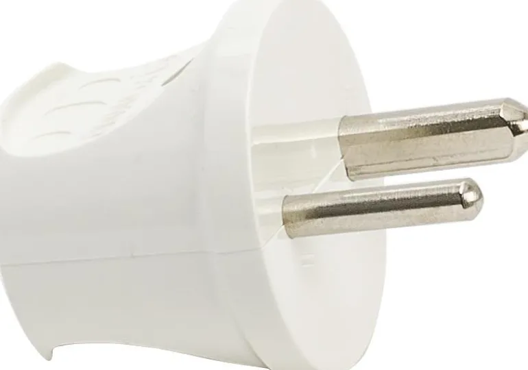 Pistotulppa, joka sopii vain pienjännitepistorasiaan. Väri valkoinen.