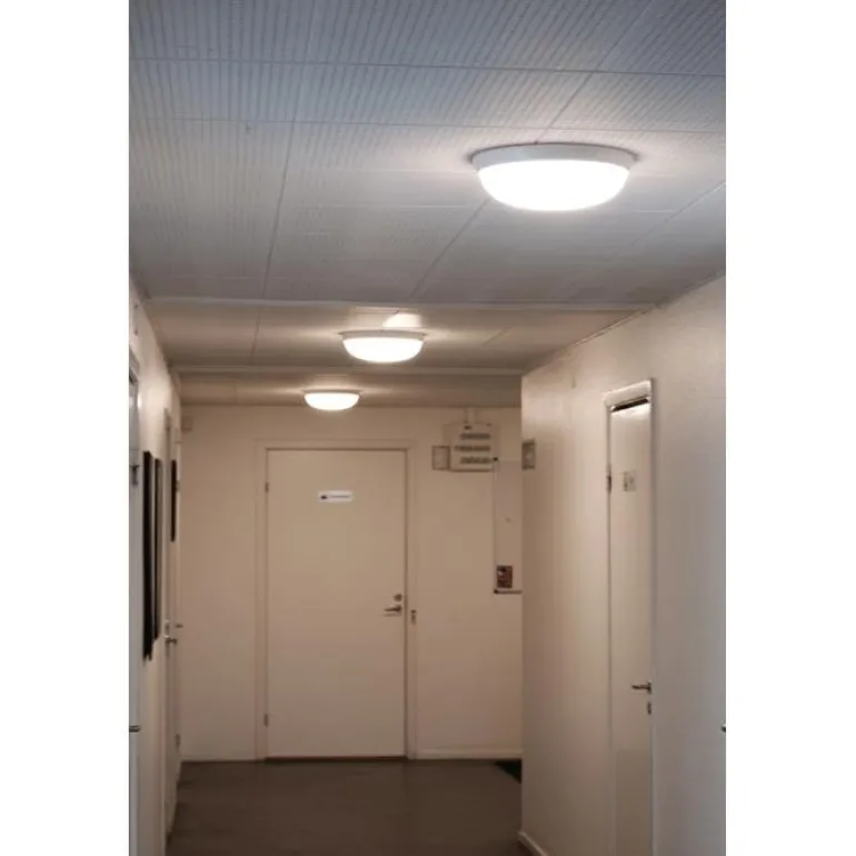 16 W plafondi opaalihäikäisysuojalla ja päällä/pois -toiminnolla. Varustettu LED-laitteella. Origon värilämpötila on 3200 K, käyttöikä 100 000 tuntia ja valovirta 1137 lm. Korkeus 89 mm ja halkaisija 262 mm. IK10.