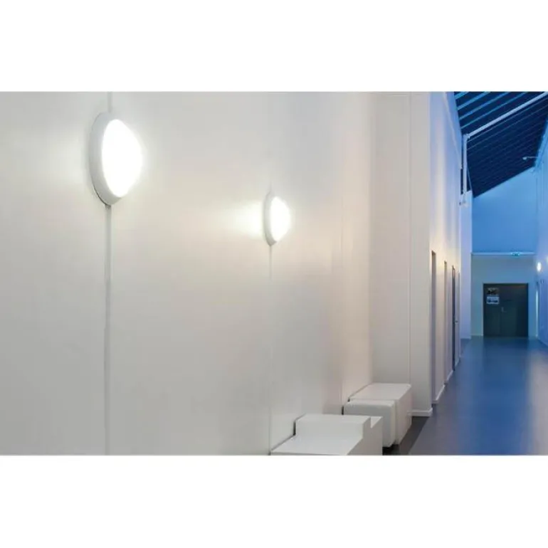 Plafondi E27-kannalla, halkaisija 280 mm. Iskunkestävä opaalipolykarbonaattikupu, IK10-luokitus. Kaksoisläpiviennit ja jatkoyhdistettävä pikaliitin. Tarjoaa laajan valonsirontakulman 120°. Pinta-asennukseen sisätiloihin.