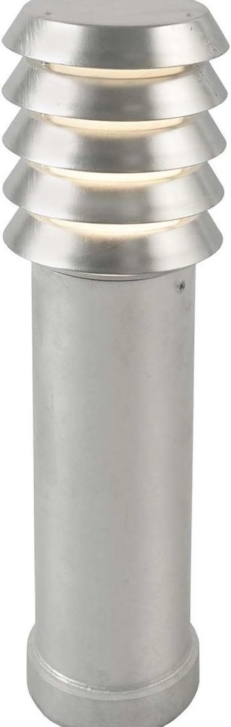 Moderni pollarivalaisin sinkittyä tai mustaksi maalattua terästä. Tätä pollarivalaisinta on saatavana kahdessa koossa, ja siinä on opaalinvalkoinen polykarbonaattilasi.