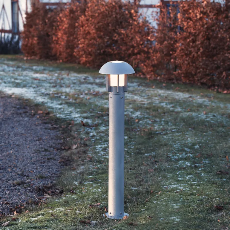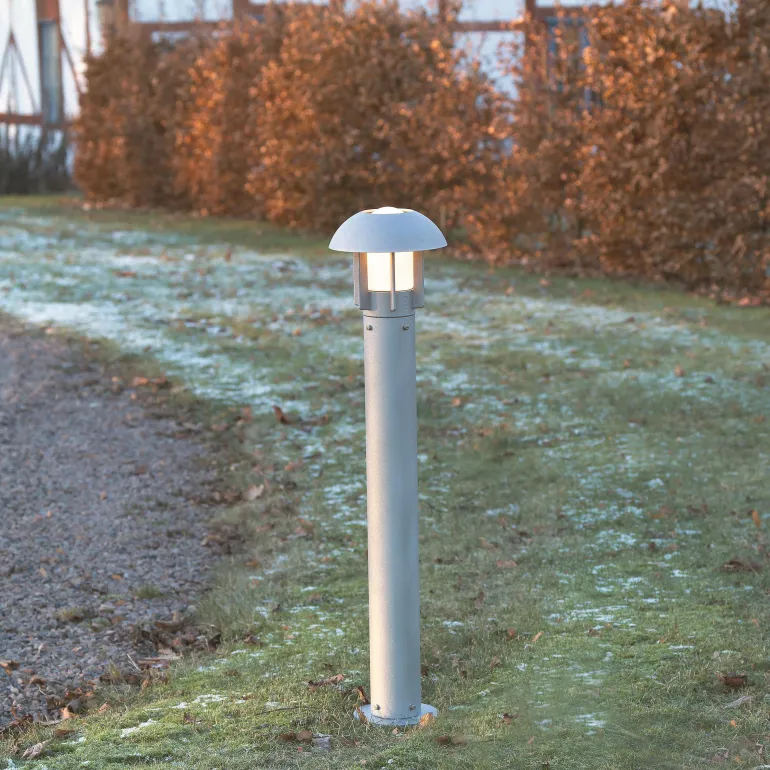 Alumiinista valmistettu pylväsvalaisin alumiinia, jossa on E27-lampunkanta. Valaisimen mitat 24 x 24 x 102 cm.