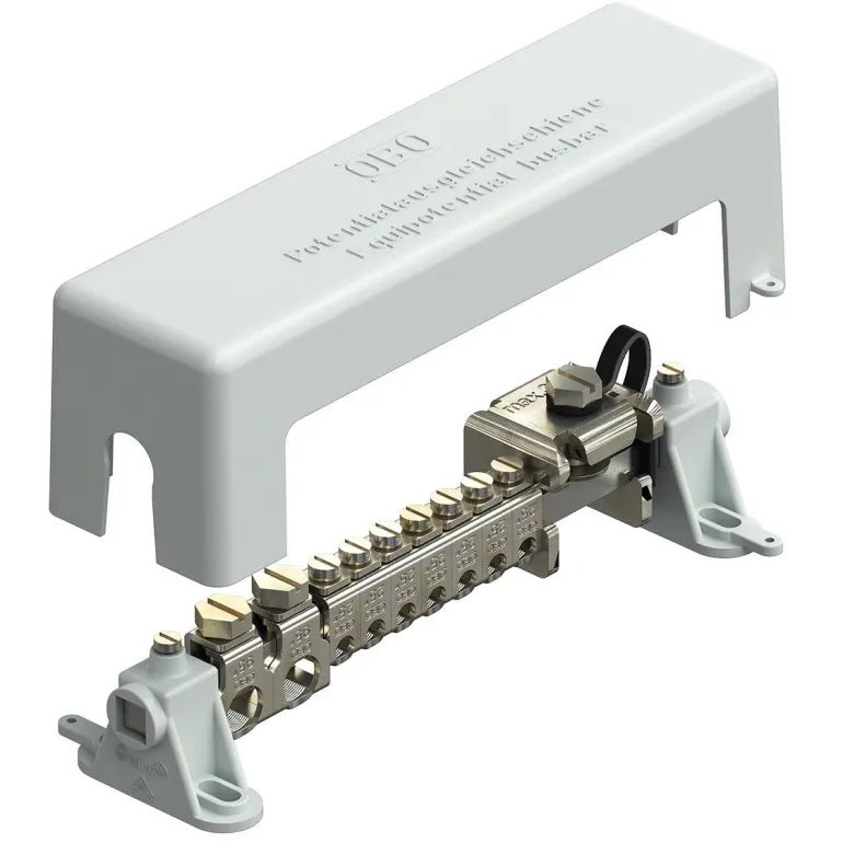 Potentiaalitasauskisko potentiaalintasaukseen SS 4364000:n kohdan 410 mukaisesti ja salamasuojaukseen SS EN 62305-3 Bbl5:n mukaisesti. Kisko nikkelipinnoitettua messinkiä, kansi ja kiinnityslevy polystyrolia.