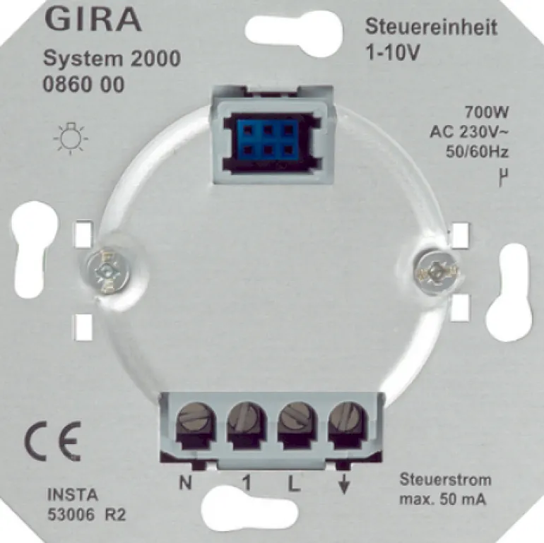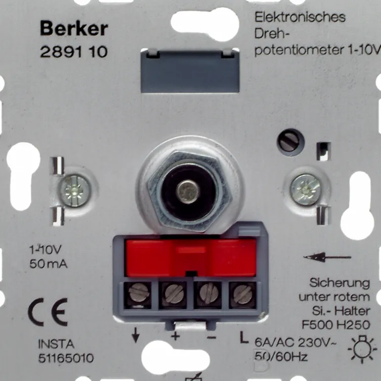 Kiertopotentiometri 1-10 V, kytkentävirta 6 A ja ohjausvirta 50 mA DC. Päälle/pois painokytkimellä. Oikosulku- ja ylikuormitussuojattu. Pehmeä sulku.