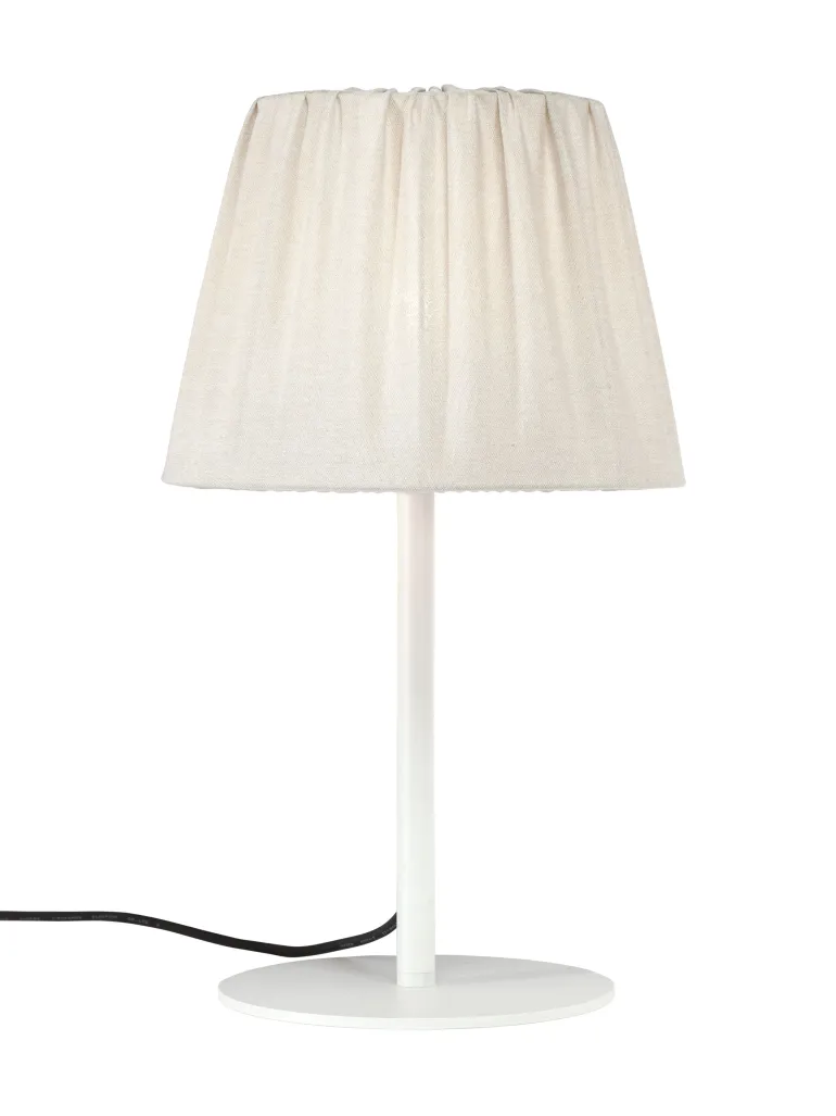 Agnar-pöytävalaisin ulkokäyttöön. Lampunvarjostin on valmistettu 100% akryylidralonista valmistetusta kankaasta, joka kestää hyvin sääolosuhteita.