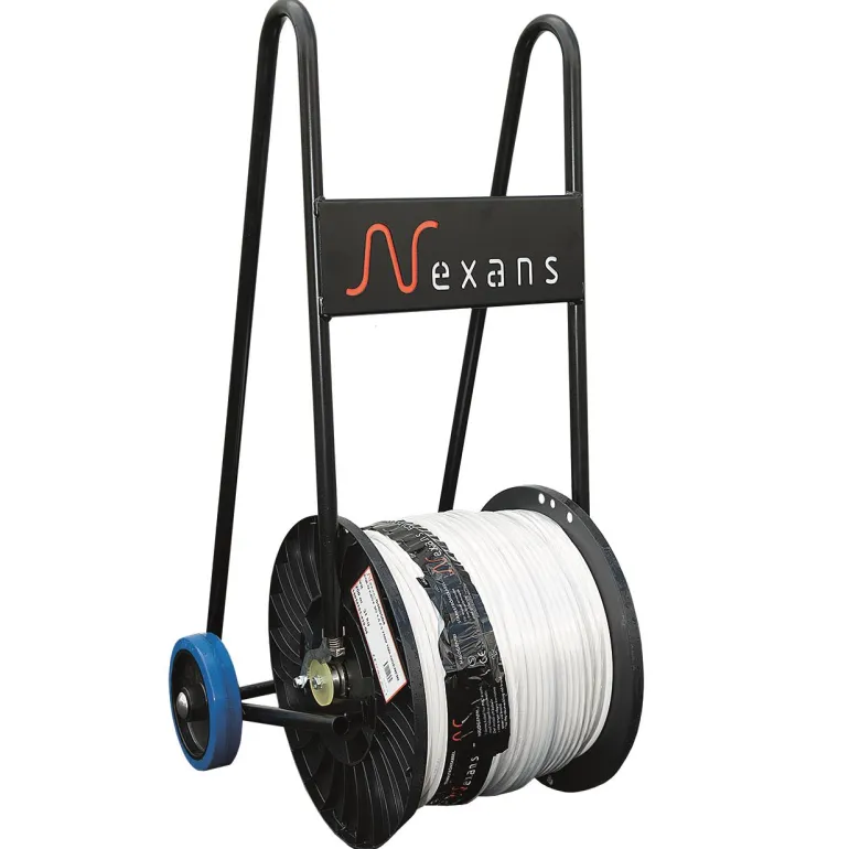 Kaapelivaunu kaapelin siirtämiseen ja purkamiseen muovisesta kaapelirullasta ja kelasta.