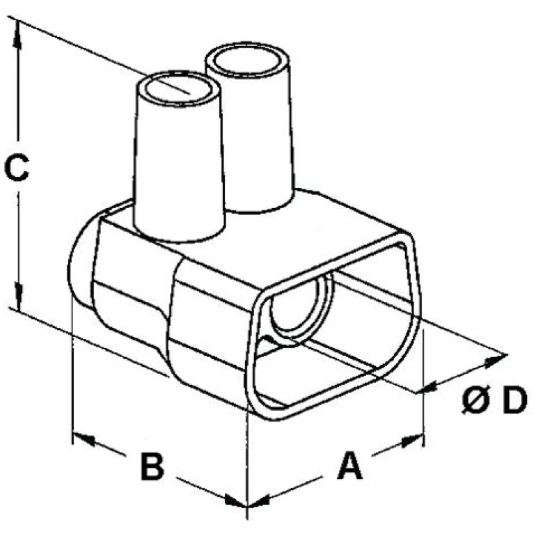 Kaksinkertainen puristusliitin liitäntäruuveilla. Liittimen nimellispinta-ala on 2 x 16 mm² ja nimellisjännite 450 V. Enimmäislämpötila +85°C. Läpinäkyvä polykarbonaattikotelo, messinkinen holkki ja sinkitty teräsruuvi.