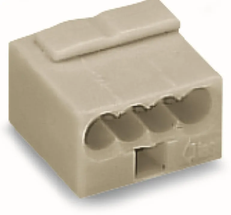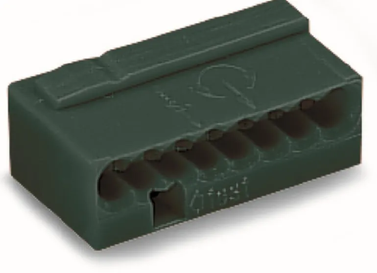 Puristusliitin väyläjohtimille, maks. 0,8 mm². 4 kiinnitysasentoa ja nimellisjännite 100 V.