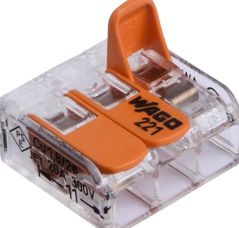Wago 221 -liittimellä voidaan liittää 0,14-4 mm²:n kokoisia joustavia johtimia sekä yksi- ja monilankaisia 0,2-4 mm²:n kokoisia johtimia. Suuri johtimen poikkileikkaus mahdollistaa erityyppisten johtimien liittämisen sekä pinta-alaltaan hyvin erilaisten johtimien yhteenliittämisen. Pieni koko mahdollistaa liittimen käytön ahtaissa tiloissa. Täysin läpinäkyvä kotelo takaa parhaan turvallisuuden ja luotettavuuden sähköasennuksissa. Wago 221:n vipujen avaaminen vaatii vähemmän voimaa, mikä mahdollistaa myös johtimien nopean liittämisen ilman työkaluja. Liittimen sivujen uritus estää liukumista, takaa paremman pidon ja helpottaa puristimen pitämistä asennuksen yhteydessä. Liittimessä on kaksi testireikää; toinen johtimen liitäntäsuunnassa ja toinen vastakkaisella puolella. Testireiät mahdollistavat käytännön testin suorittamisen, kun johdin on kytkettynä, sekä erilaisissa asennusympäristöissä. Liitintä voidaan käyttää enintään 85 °C: n lämpötilassa.