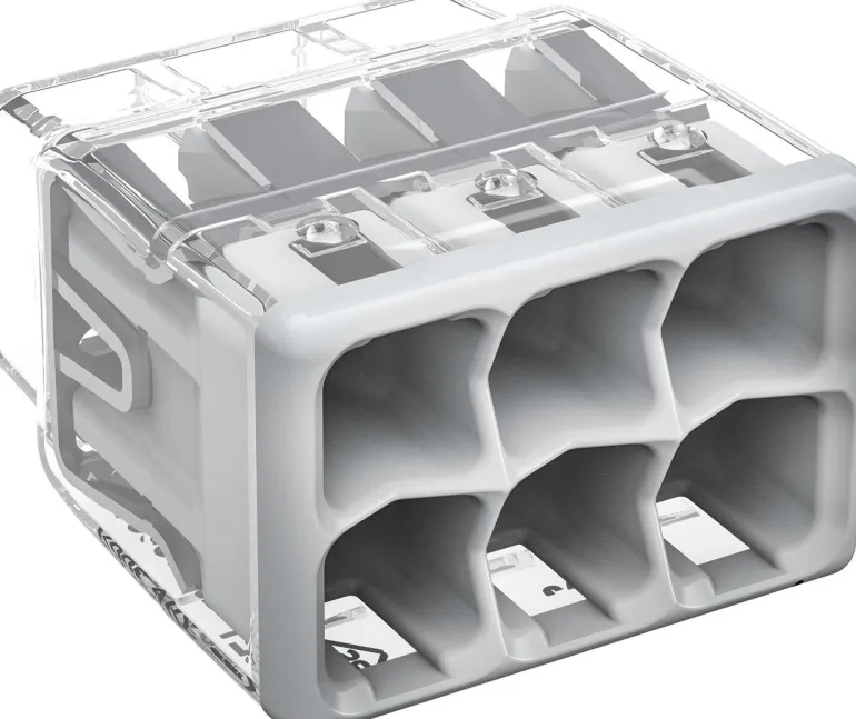 Kompakti liitin yksi- ja harvalankaisille johtimille. Pieni ja helppokäyttöinen liitin vie vain vähän tilaa kytkentärasiassa. Ruuviton, eristämättömät johtimen päät painetaan vain sisään. Sopii kaapeleille FK 1,5–4 mm² ja EK 0,75–4 mm². Läpinäkyvä kotelo. Irrotetaan kääntämällä johdinta ja vetämällä. Liitintä voidaan käyttää enintään 85 °C: n lämpötilassa. 10 kpl.