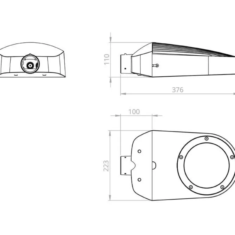Putkikiinnike seinävalaisimelle Aero. Mitat ovat 110 x 223 x 376 mm (P x L x K).