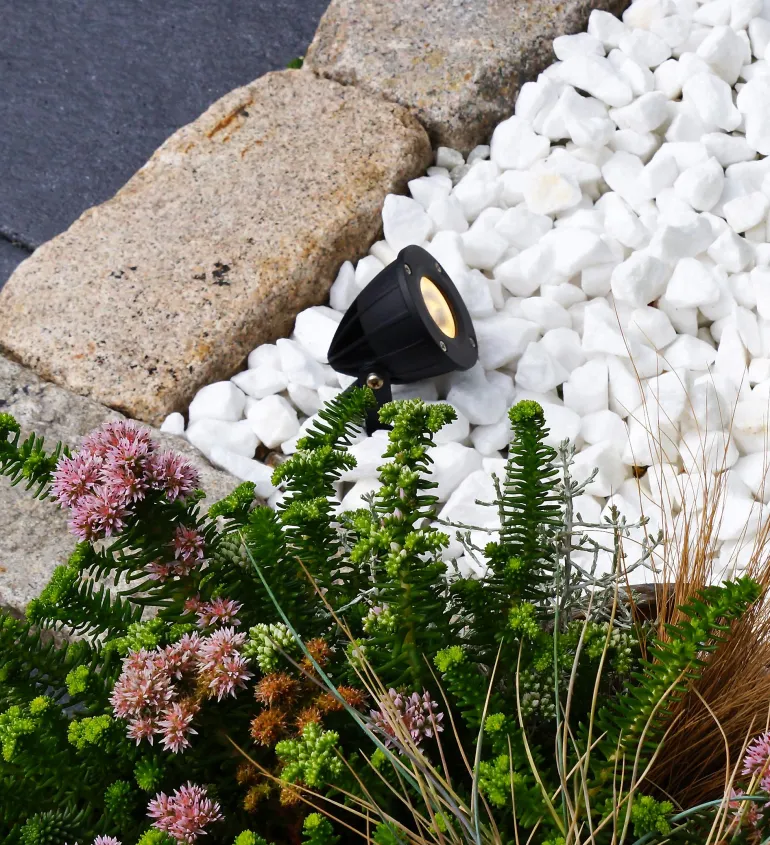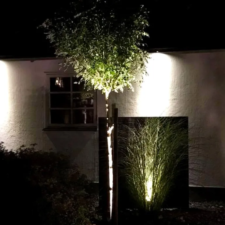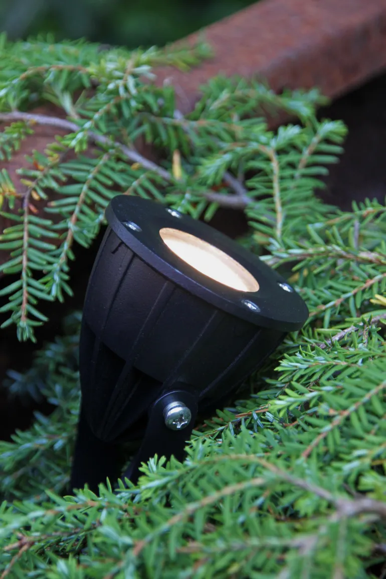 Puutarha-/kohdevalaisin kapealla valonjaolla/-keilalla esim. puiden runkojen tai latvaosien valaisuun. Voidaan hyvin käyttää myös julkisivujen tai pensaiden kohdevalaisuun, tai kasvillisuuden valaisuun kasvillisuuden keskeltä. LightsOn Garden Plug & Play on joustava ja hinnaltaan kilpailukykyinen 12 voltin (turvallinen matalavirta) puutarhavalaistusjärjestelmä, jonka voit asentaa helposti itse ja laajentaa myöhemmin jopa 50 metrin kokonaispituuteen. Valaisimissa on lämmin valo ja skandinaavinen muotoilu – suunniteltu kestämään pohjoisen ilmastoa. Muista valita muuntaja, joka vastaa valaisimiesi yhteenlaskettua wattilukua. Parhaan käyttöiän saavuttamiseksi suositellaan, ettei muuntajaa kuormiteta yli 85 % sen maksimikapasiteetista. Voit myös lisätä valojärjestelmään hämäräkytkimen, joka sytyttää valot automaattisesti illan hämärtyessä.