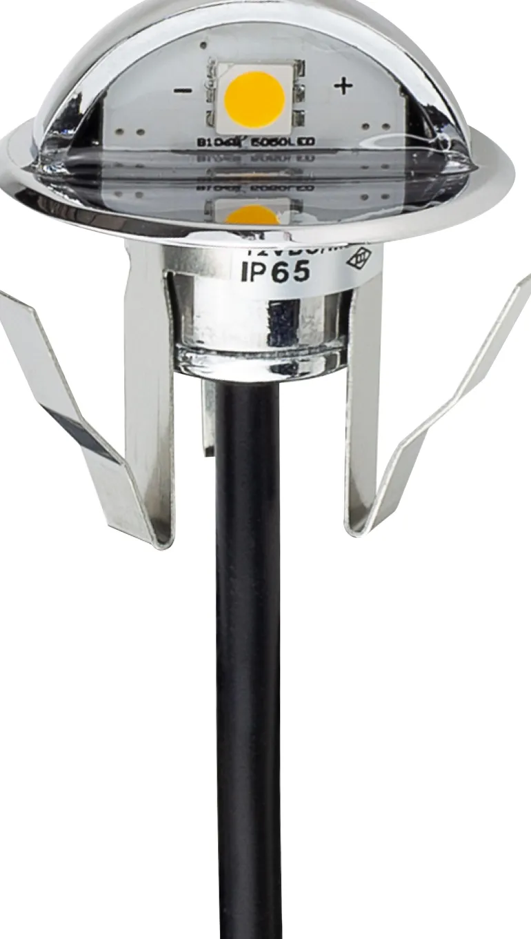 Pieni, huomaamaton ja hyvin himmennetty tehostevalaistus upotettavaan valaistukseen, joka on ihanteellinen asennettavaksi seiniin, portaisiin jne. sekä sisä- että ulkotiloihin. Täydellinen sarja, jossa 6 x 0,4 W LED -porrasvalo, ulkomuuntaja ja kaapeli.