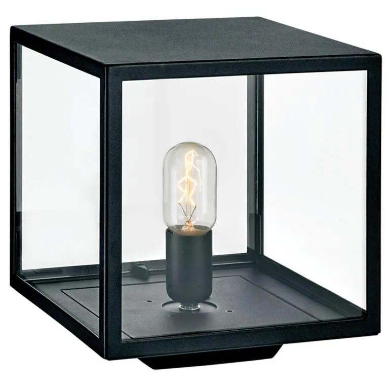 Retrovalaisin mustaksi maalattua terästä ja kirkasta lasia. Valaisimessa on E27-kanta ja IP44-luokka.