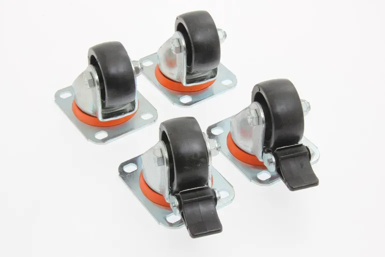 Pyörät Eurolan-lattiakaapeille, kaksi neljästä on lukittavissa. Kestää 250 kg.
