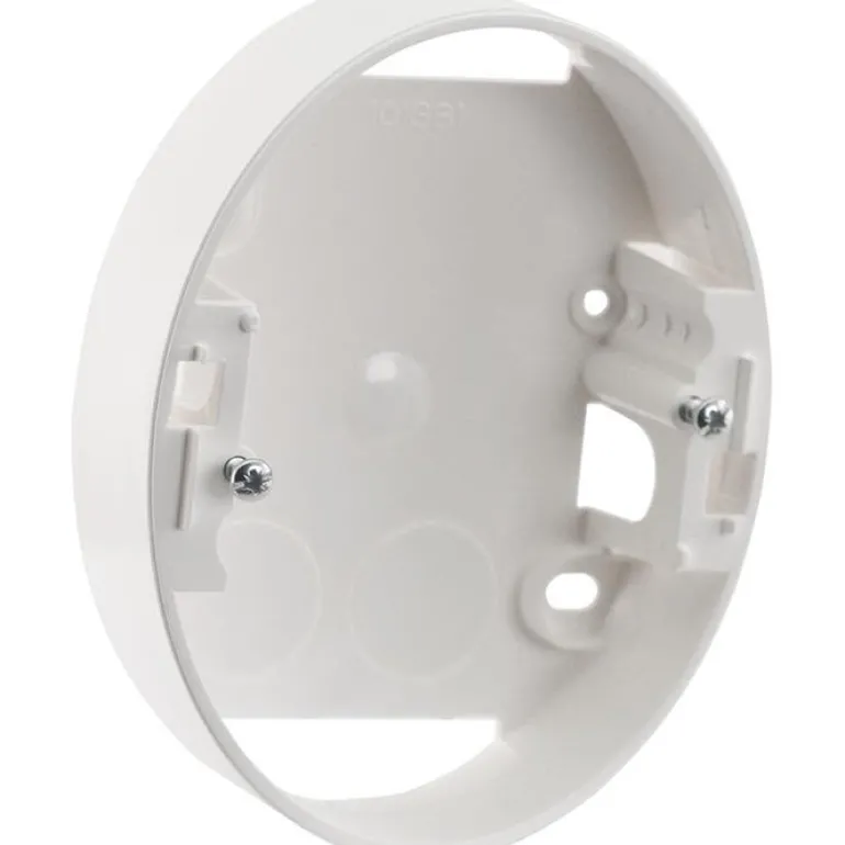 Valkoinen kojerasia, jota käytetään Renovan 2-pistorasioiden pinta-asennukseen.