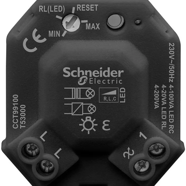Schneider Exxact CCT99100 on yleishimmennin. Käytetään hehkulamppujen, halogeenilamppujen, pienjännitehalogeenilamppujen tai LED-lamppujen kanssa.