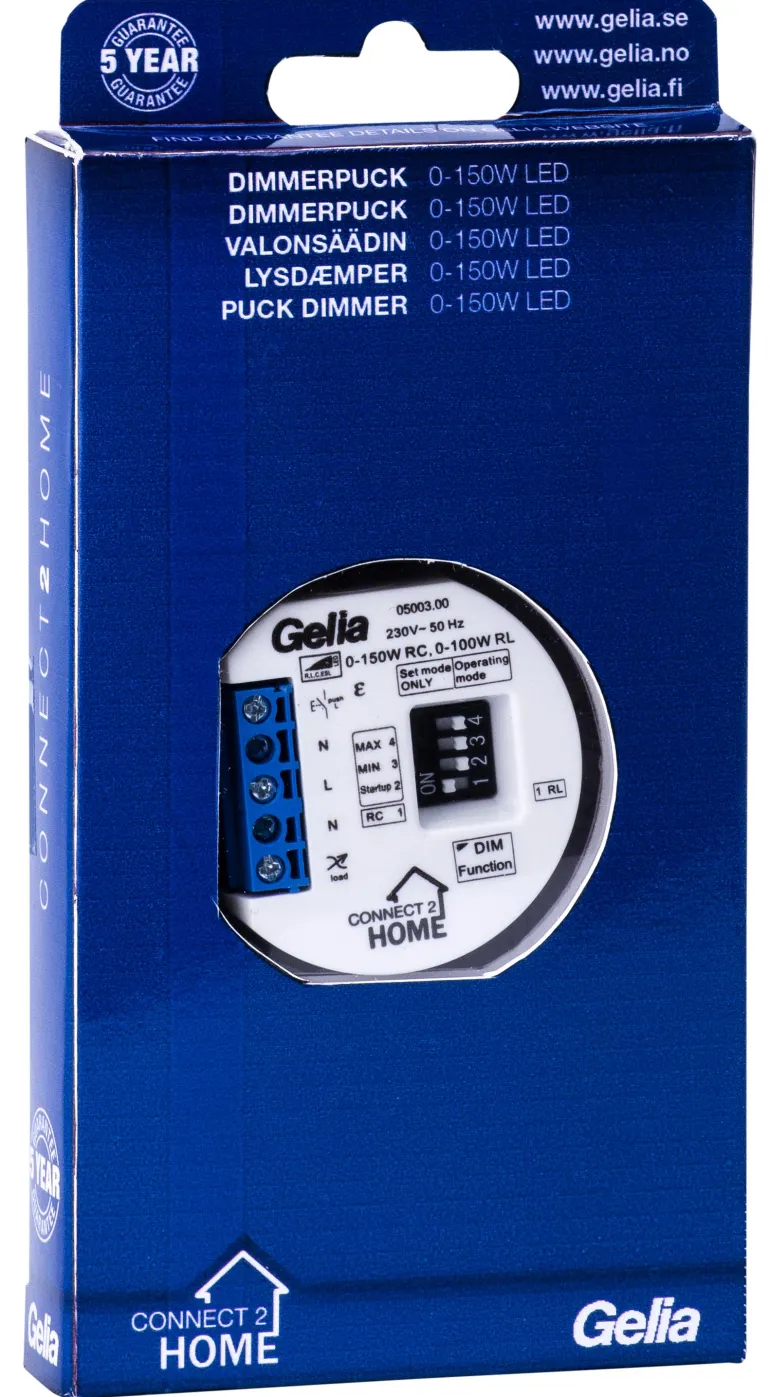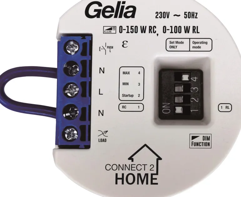 Rasiahimmennin/kiekkohimmennin, jossa on minimi- ja maksimitason asetukset sekä minimikäynnistystason asetus. Säädettävä himmennystekniikka etureunan (RL) ja takareunan (RC) välillä. Tarvitsee nollajohtimen. Pienikokoinen rakenne: sopii asennettavaksi laiterasiaan, painikkeen taakse. Ohjaus jousikuormitetuilla painikkeilla. Impulssijouset ovat yhteensopivat Connect 2 Home-, Elko- ja Schenider Electric -virtakytkinten kanssa. Himmennin pystyy käsittelemään 0–150 W:n elektronisia muuntajia ja LED-ohjaimia (RC), LED-ohjaimia (RL) ja pienloistelamppuja (E14, E27 ja GU10), sekä hehkulamppuja ja halogeenilamppuja. Yhdessä perinteisten matalajännitteisen halogeenimuuntajien kanssa himmennin pystyy käsittelemään 0–100 W.