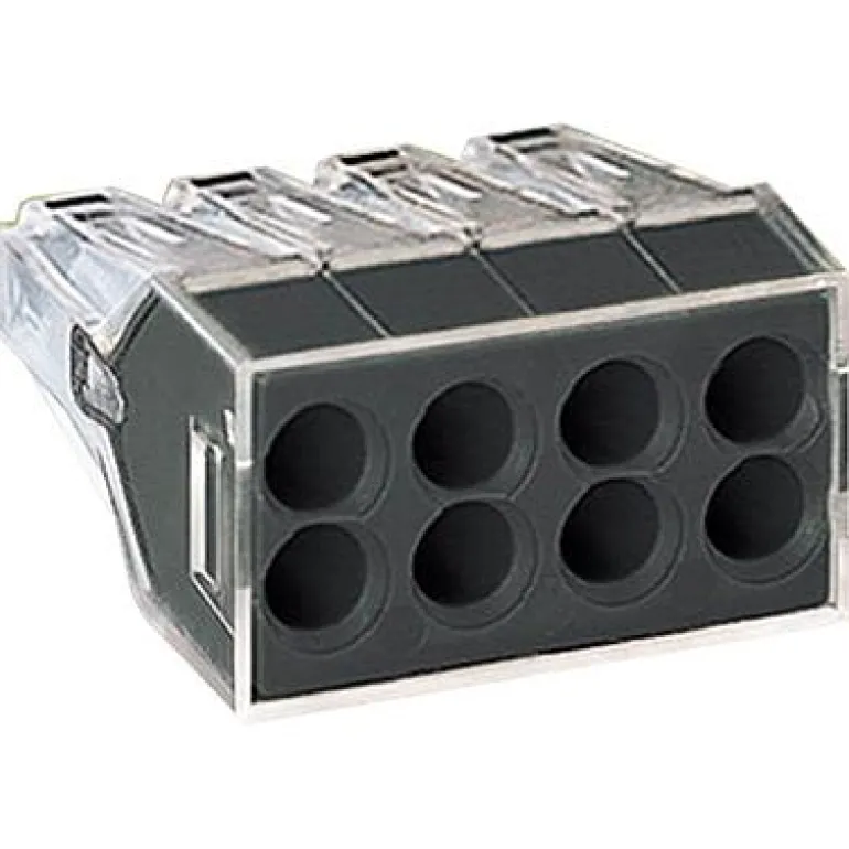 Wago 773-108 on rasialiitin, jossa on 8 napaa ja joka kytketään siten, että eristämättömät johtimen päät (FK/EK) työnnetään ruuvittomaan liittimeen. Värikoodaus yhdessä läpinäkyvän suojan ja testireikien kanssa tekee turvallisuudesta näkyvää. Kierrä johdinta ja vedä sitä purkamisen aikana. Toimitetaan 50 kpl:n pakkauksessa.