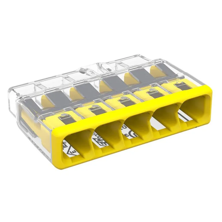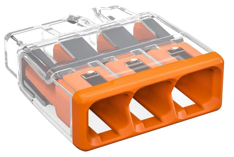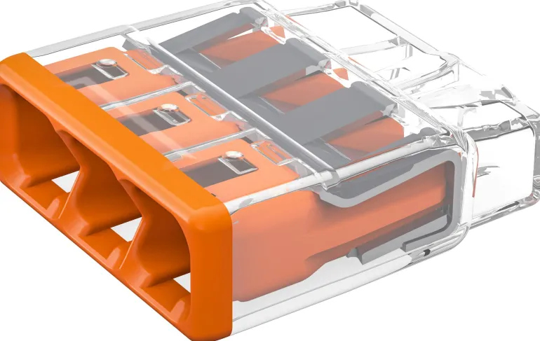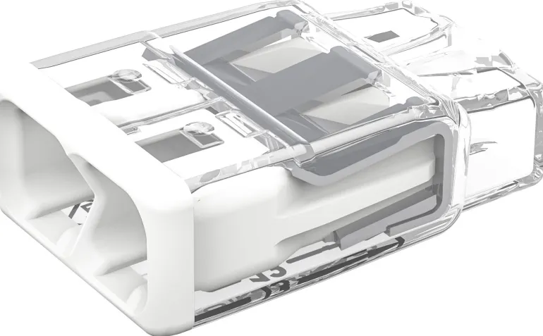 Kompakti jousikuormitettu rasialiitin EK- ja FK -kytkentärasioille, hyväksytty enintään 450 V:n ja 32 A:n jännitteelle.