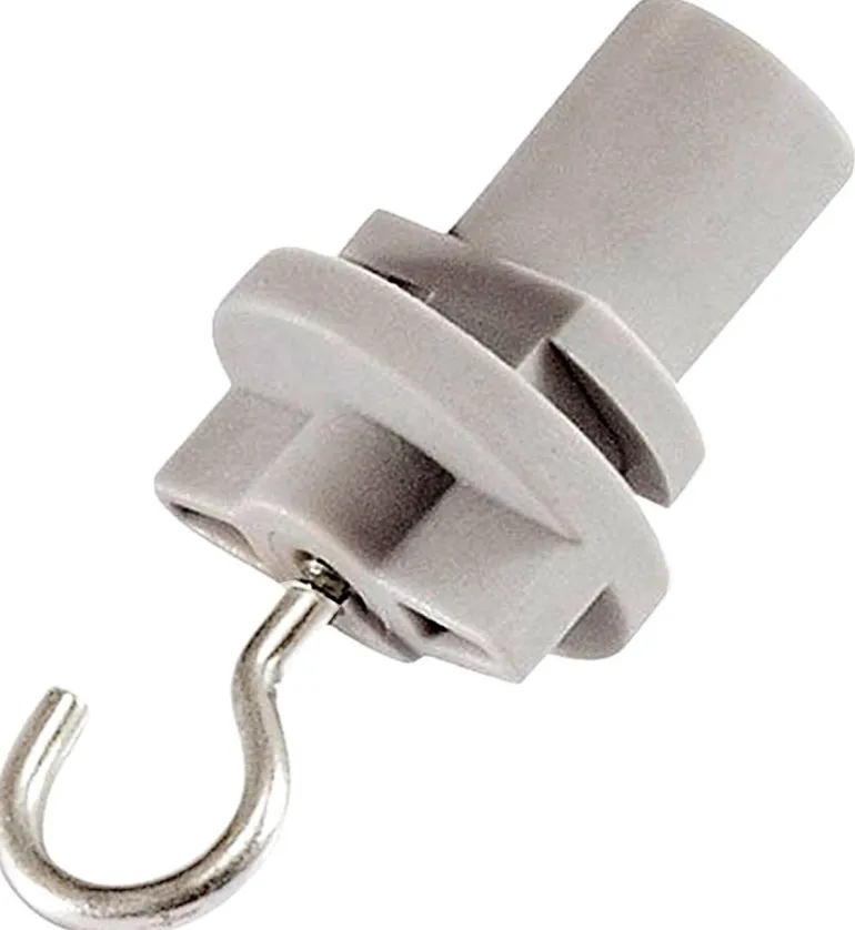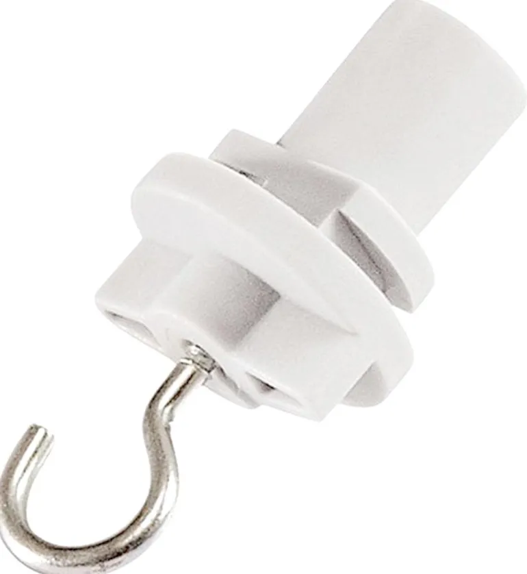 Valkoinen ripustuskannake koukulla asennettavaksi 3-vaiheiseen kiskoon.