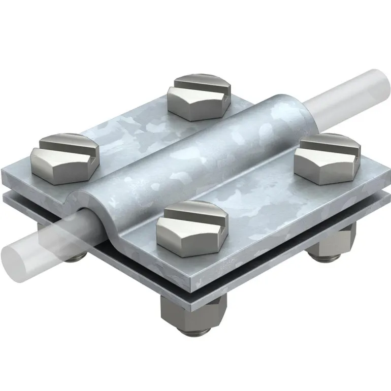 Ristipuristin, kuumasinkittyä terästä. Johtimien / litteiden nauhojen liittämiseen tai kiinnittämiseen raudoitukseen.