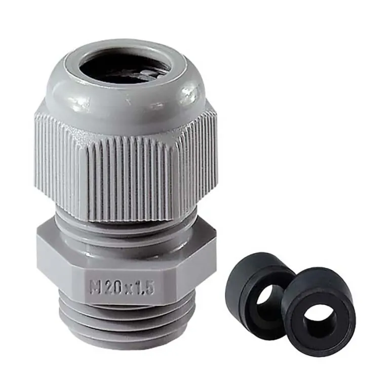Kaapelitiiviste, jonka ulkokierteessä on litteä kloropreenitiivisterengas. Supistustiiviste (kaksiosainen) sopii useammille halkaisijaltaan erilaisille kaapeleille, integroitu vedonpoisto.