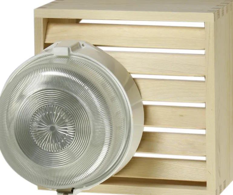 Saunavalaisin seinäasennukseen, vähintään 100 mm katosta. Malli on saatavana ristikolla tai ilman.