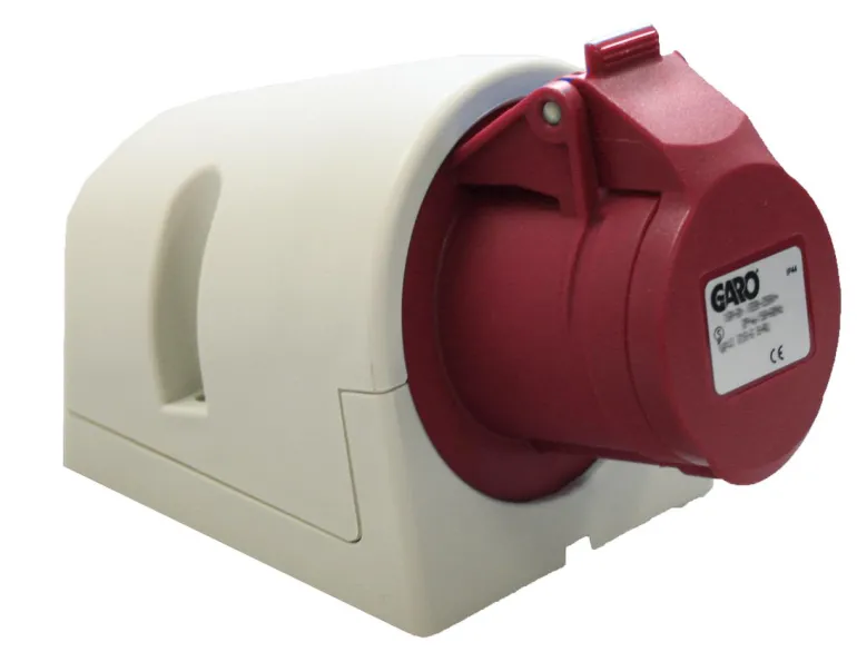Ruuviton seinäpistorasia 16 A pikaliittimellä. Yhdistettävä johdinalue 1–2,5 mm².