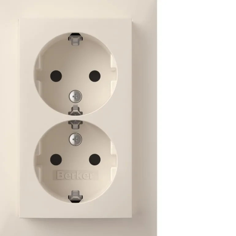 Täydellinen 2-osainen pistorasia, 16 A, maadoitettu, X-liittimellä, kosketussuojattu, pikaliittimillä, asennukseen kojerasiaan, S.1-sarja.