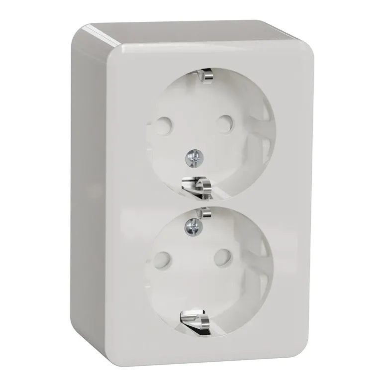 Schneider Exxact on 2-osainen seinäpistorasia pinta-asennukseen integroidulla pohjalevyllä. 16AX, 250V, maadoitettu, jaettu kanta, kosketussuojattu. Ruuviliitäntä. Tulot kaapeleille takaa pohjalevyn läpi tai kaikilta puolilta käyttäen aukkoja kannessa. Tuote on luokiteltu IP20-luokkaan (vaikka kansi poistettaisiin). IP21, kun kaapeli asetetaan alapuolelta.