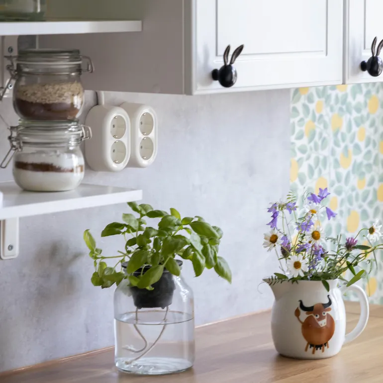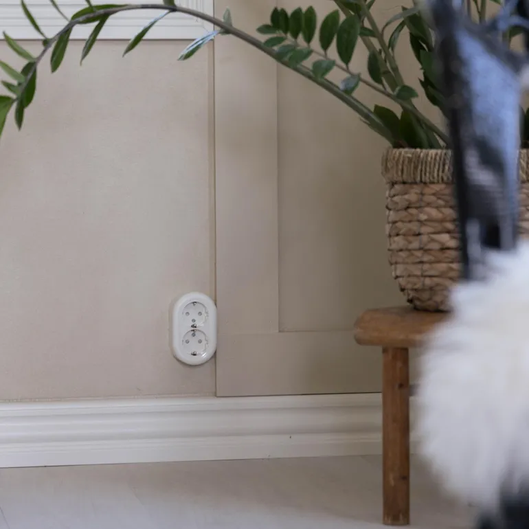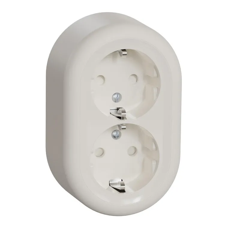 Pistorasia pikaliitännällä pinta-asennukseen integroidulla pohjalevyllä. Pistorasia on maadoitettu ja kosketussuojattu. Tulot kaapeleille takaa pohjalevyn läpi tai kaikilta puolilta käyttäen aukkoja kannessa.