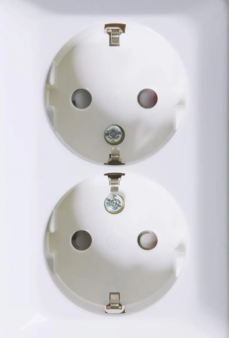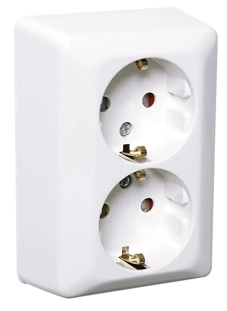 Pistorasia ”ELKO-QVICK” pinta-asennukseen. 2-osainen, turvatyyppinen pistorasia ruuviliitännällä. Maadoituksella.