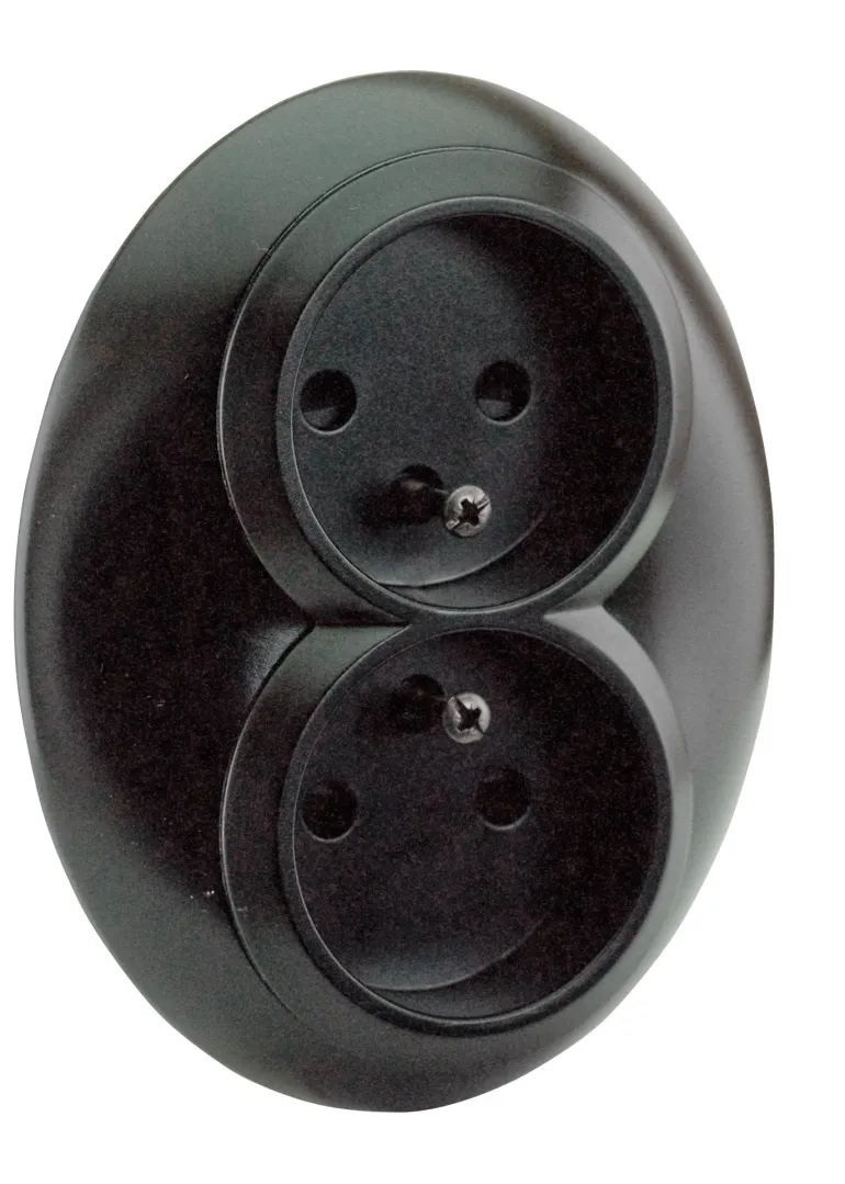 Maadoittamaton 2-osainen pistorasia upotettavaksi kojerasiaan. Varustettu kynsillä, mikä tarkoittaa, että se sopii myös vanhempiin kojerasioihin, joissa ei ole ruuvirengasta.