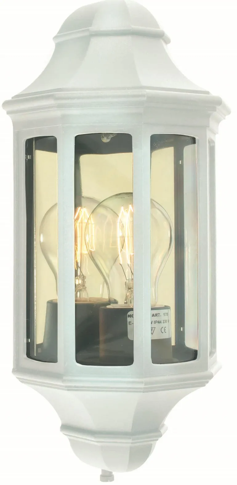 Seinävalaisimessa on klassinen muotoilu, kanta E27. Valaisin on jauhemaalattu valkoiseksi.