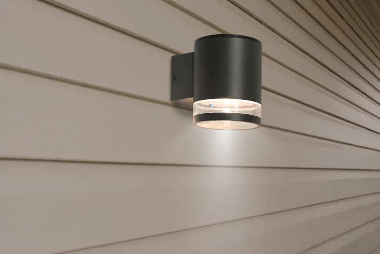 Seinälle asennettava aurinkokennovalaisin valmistettu alumiinista ja polykarbonaatista. Seinävalaisin pyöreällä muotoilulla valaisee alaspäin ja läpinäkyvä rengas hajottaa valoa miellyttävästi.